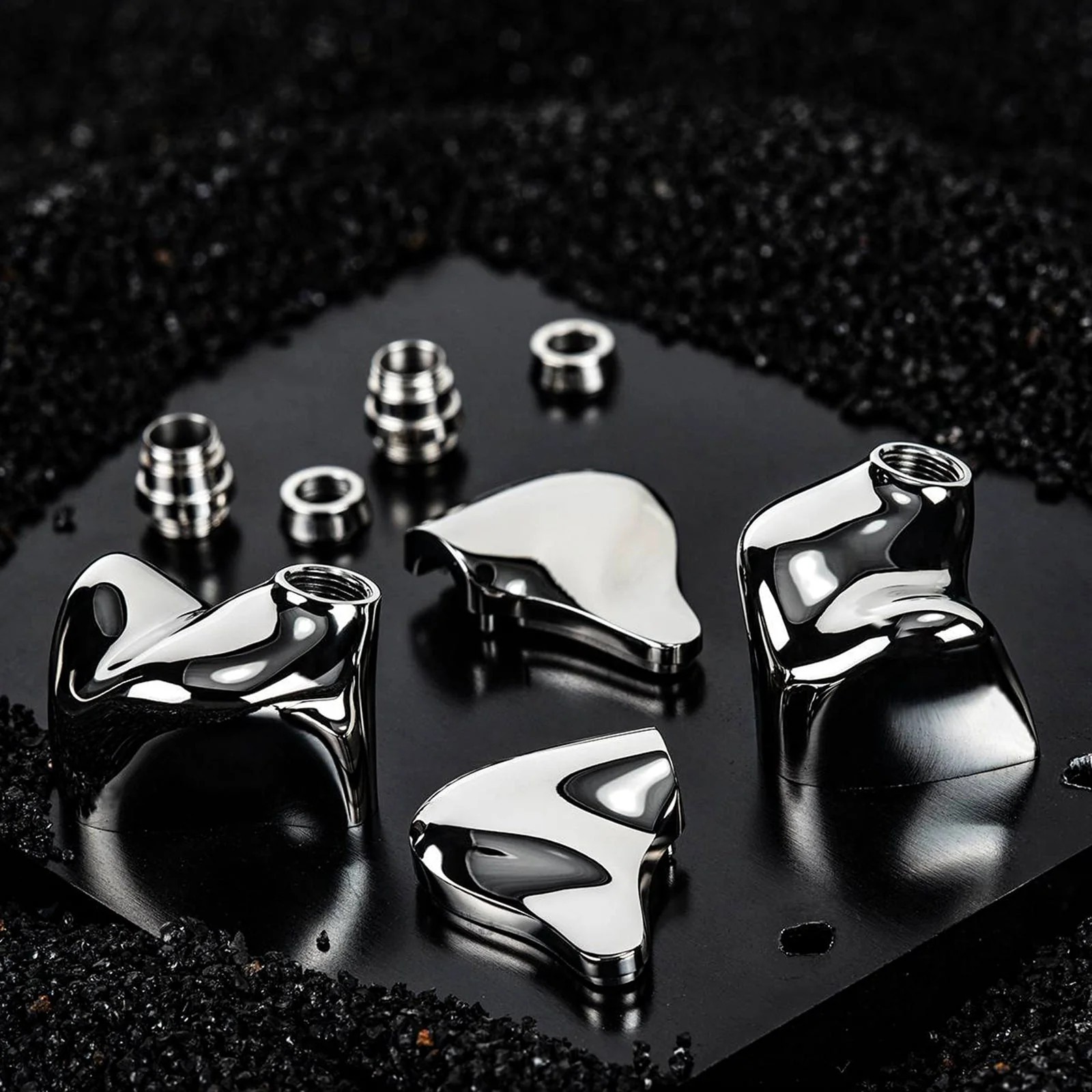 Anschließend werden sie von Hand poliert, um eine edle Spiegeloberfläche zu erzielen, die dem Paar sein endgültiges Aussehen verleiht. Die Ohrmuscheln bestehen aus massivem 904L-Edelstahl. Dies sind die ersten Ohrmuscheln auf dem Markt, die aus 904L-Edelstahl gefertigt sind. Abschließend werden die Ohrmuscheln mit einer DLC-Beschichtung (Diamond-Like Coating) behandelt, um ihr Aussehen zu erhalten und die Haltbarkeit zu verbessern.