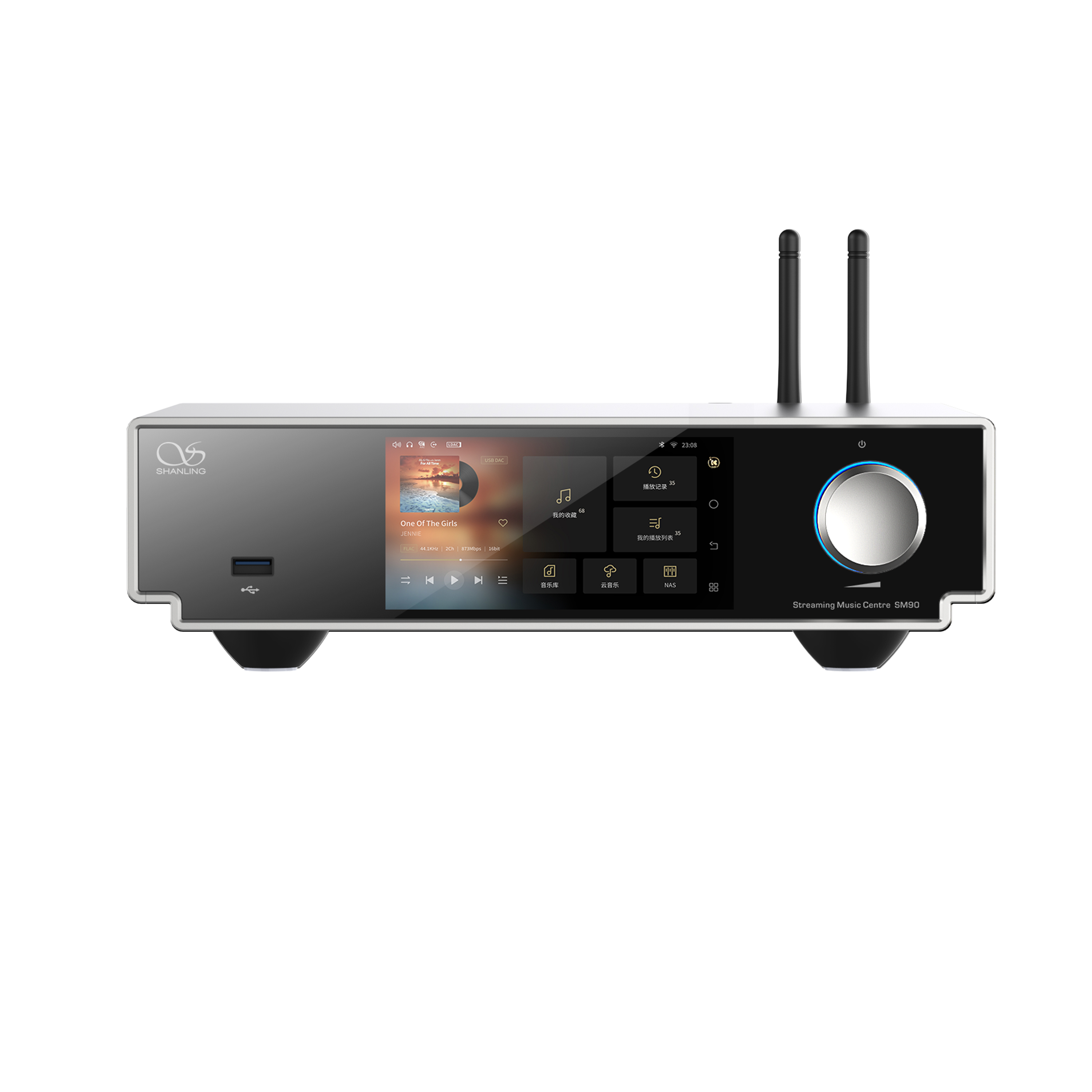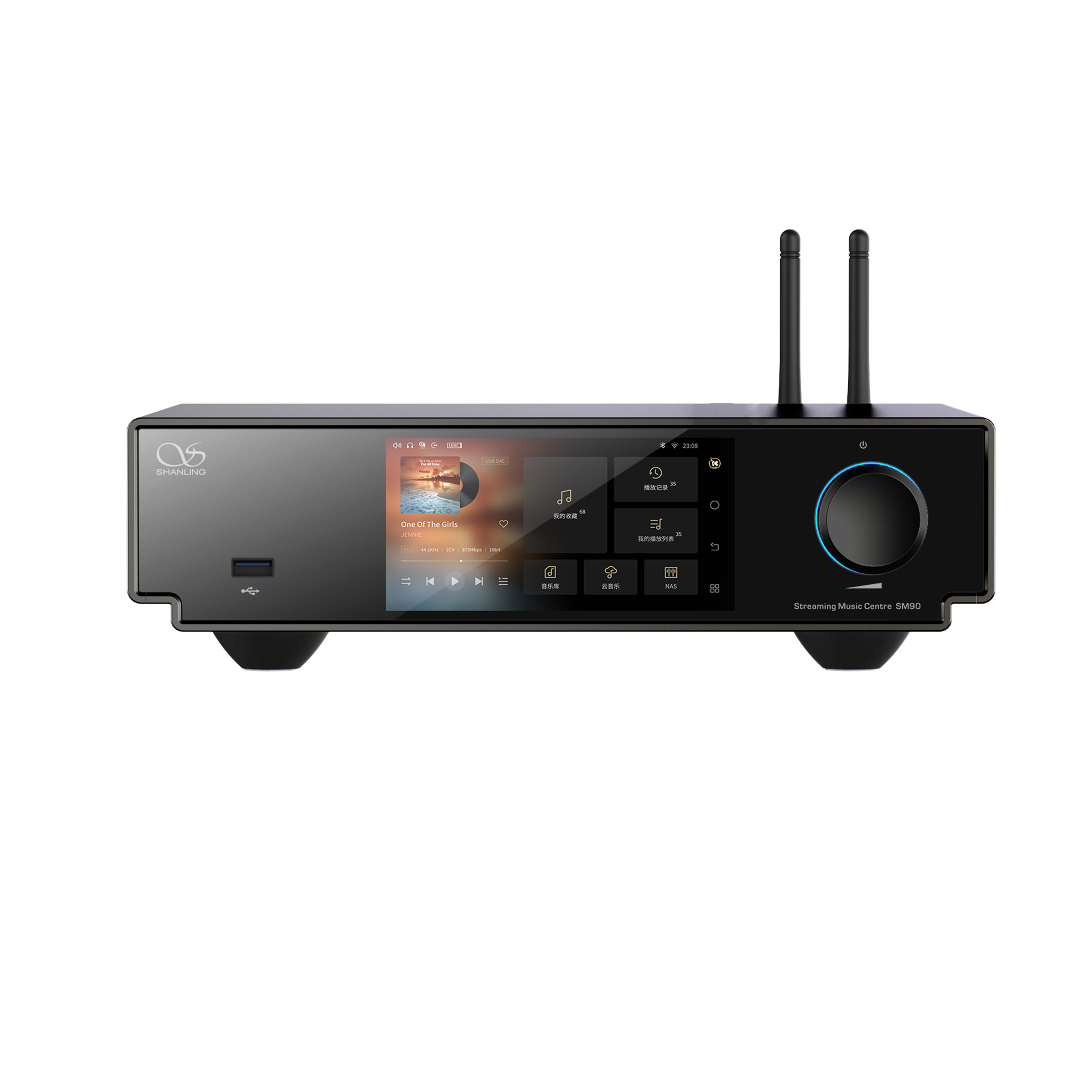 The SM90 features a compact aluminum chassis with a 4.96-inch 1080P touchscreen, offering intuitive control, clear visuals, and a modern aesthetic that fits seamlessly into any Hi-Fi setup.