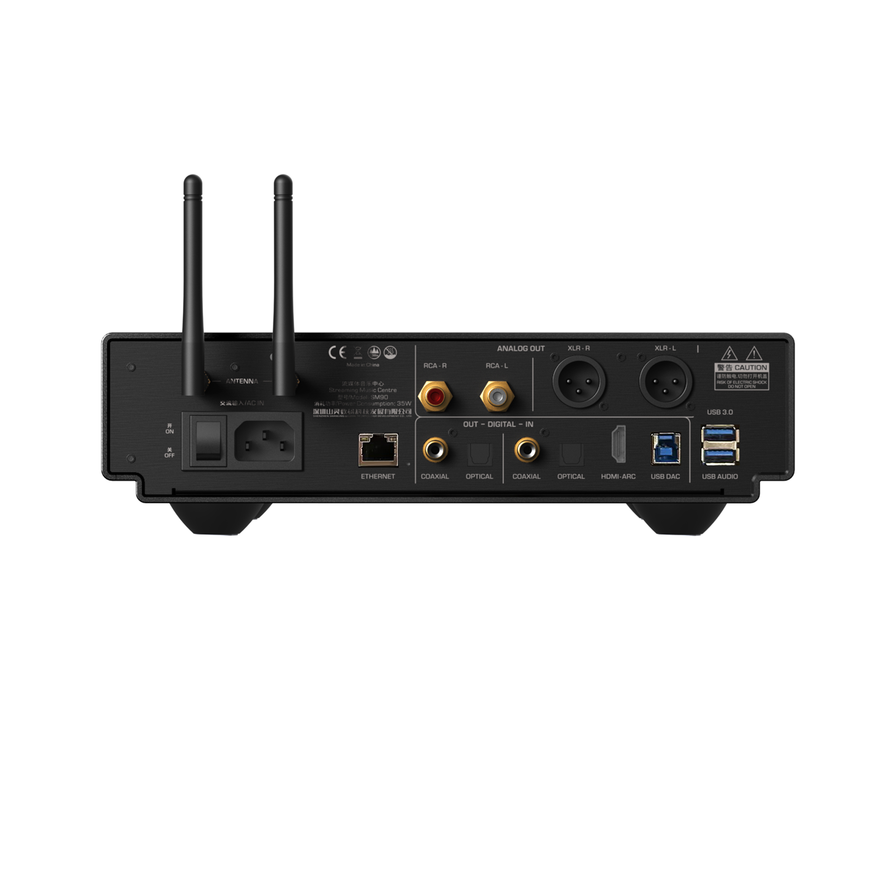 Designed as a multi-functional Hi-Fi source, the SM90 includes a wide range of inputs and outputs, including digital inputs such as USB DAC, coaxial, optical, and HDMI ARC, digital outputs such as USB audio, coaxial, and optical, as well as analog outputs via RCA and XLR, allowing seamless integration with amplifiers, DACs, CD players, and home audio systems.