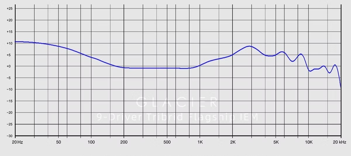 Der Glacier ist etwas Besonderes: DUNU hat ein sorgfältig entwickeltes Tribrid-Setup mit neun Treibern in einer doppelten 4-Wege-Frequenzweiche und -Steuerung integriert.