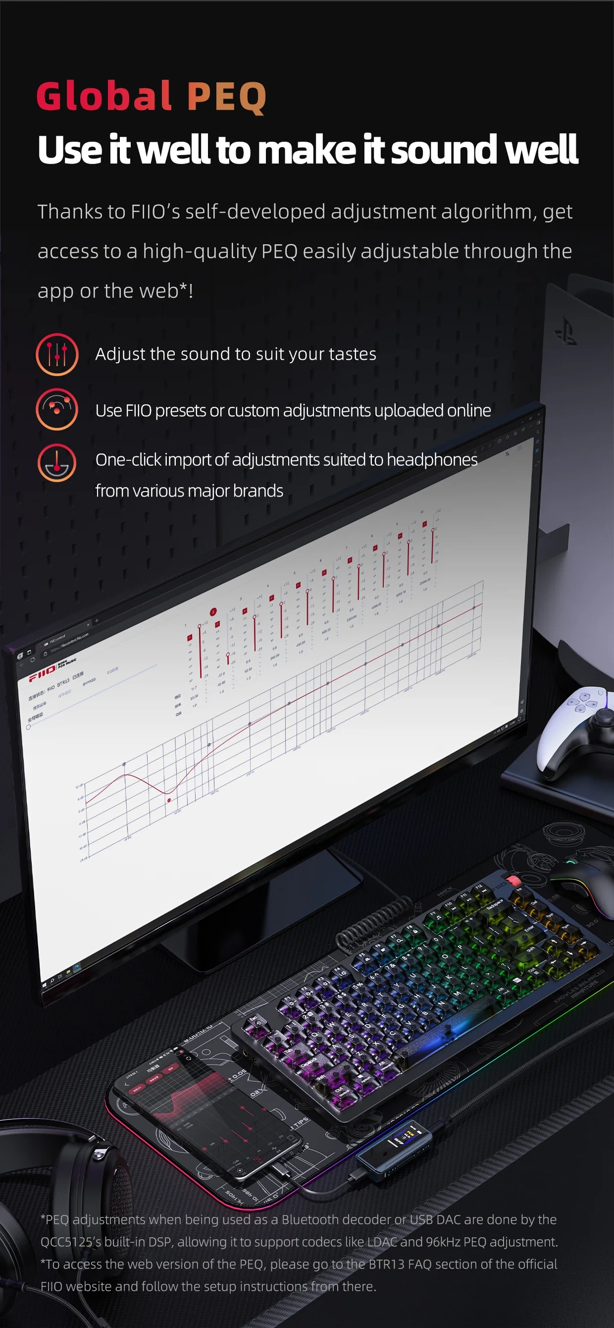 Dank des von FIIO selbst entwickelten Anpassungsalgorithmus erhalten Sie Zugriff auf einen hochwertigen PEQ, der sich einfach über die App oder das Web einstellen lässt.
