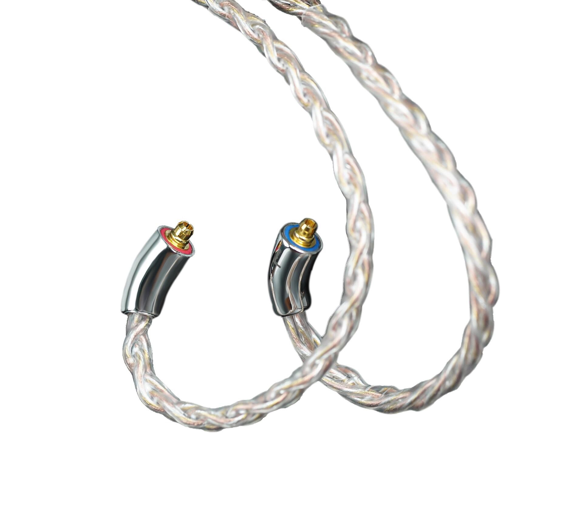 Das Kabel verfügt über L-förmige, erweiterte MMCX-Anschlüsse. Der Mittelteil und der Stecker sind aus medizinischem Edelstahl 316L gefertigt, der von Hand auf Hochglanz poliert und PVC-galvanisiert wurde, um ihn nicht nur haltbarer, sondern auch angenehmer zu tragen zu machen. Das Kabel hat eine transparente Außenhülle aus deutschem TPU, weil das Material super abriebfest und alterungsbeständig ist, sich glatt anfühlt, schön durchscheinend ist und bequem zu tragen ist.