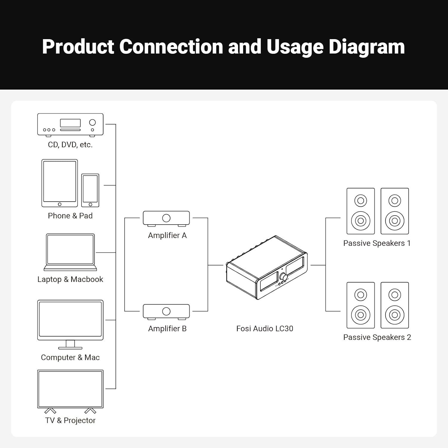 - Model LC30 Eingang - bis zu 2 Verstärker Ausgang - bis zu 2 Paar passive Lautsprecher Unterstützte Verstärker Typen - BTL, Class A, Class AB, Class B, Class D, Röhrenverstärker usw.