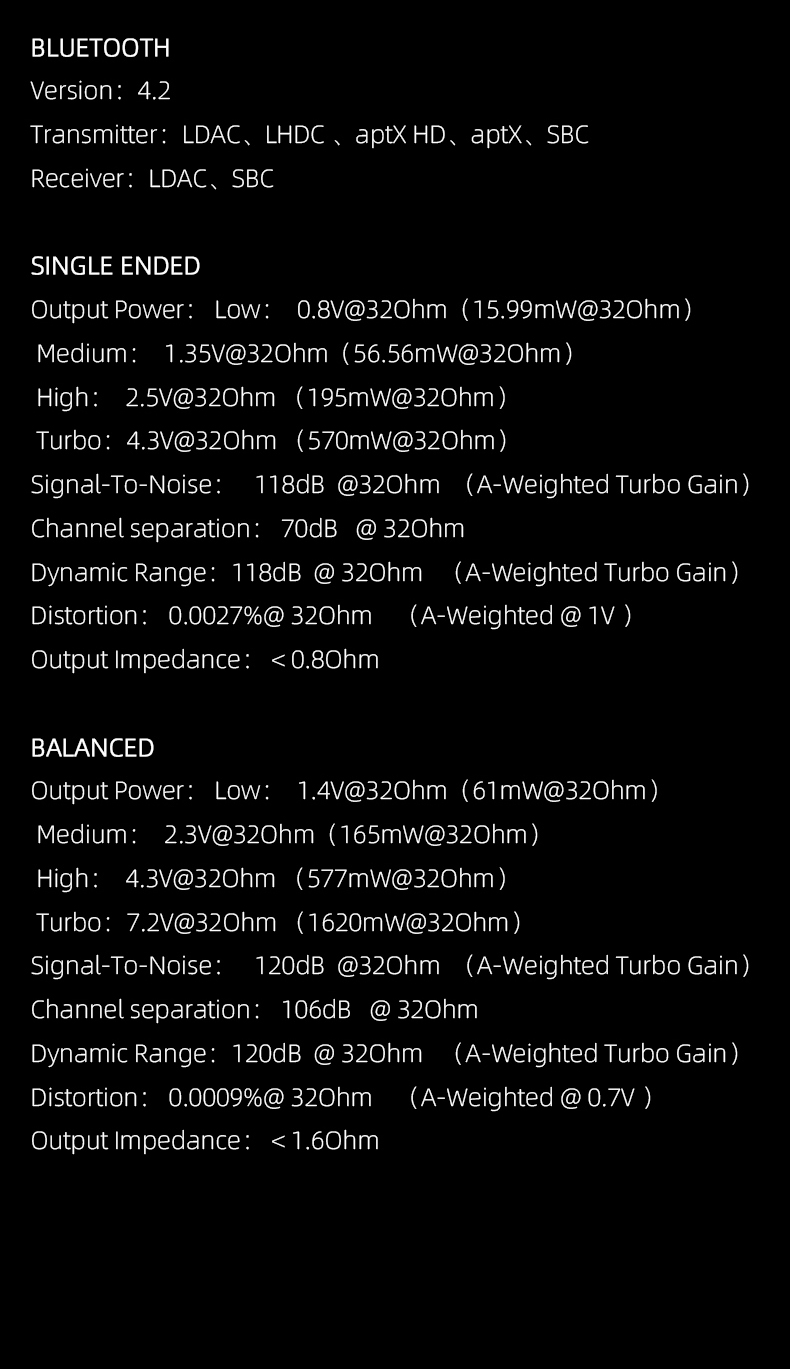 - SNR: 118dB@32Ω.