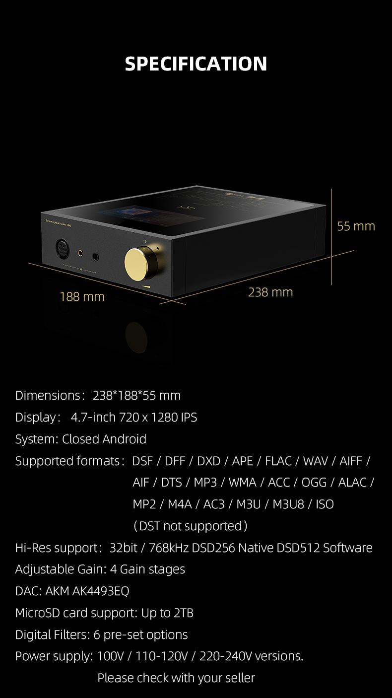 Um Ihnen den für Shanling typischen weichen und natürlichen Klang zu bieten, hat Shanling den klassischen AKM AK4493EQ DAC Chip für den EM5 ausgewählt. Kombiniert mit einer hochwertigen Stromversorgung, Hi-Res-Wiedergabefähigkeiten und Shanlings 33-jähriger Design-Erfahrung, können Sie echten Hi-Fi-Sound erwarten.