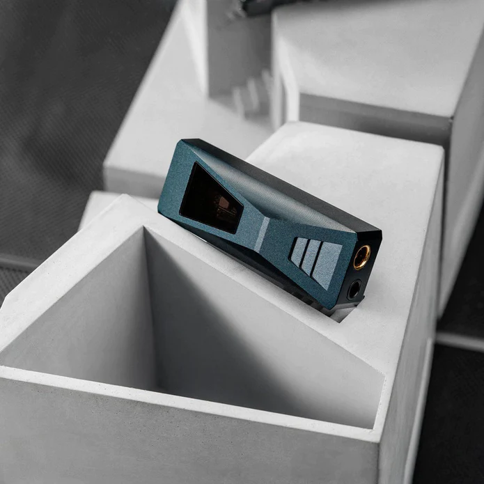 Der DUNU DTC500 verfügt über ein atemberaubendes Design im Cyberpunk-Stil. Das Gerät hat ein CNC-gefrästes Gehäuse aus Aluminiumlegierung mit einem halbtransparenten Glasfenster in der Mitte. Durch das transparente Glasfenster kann man einen Blick auf die internen Audioschaltkreise werfen.