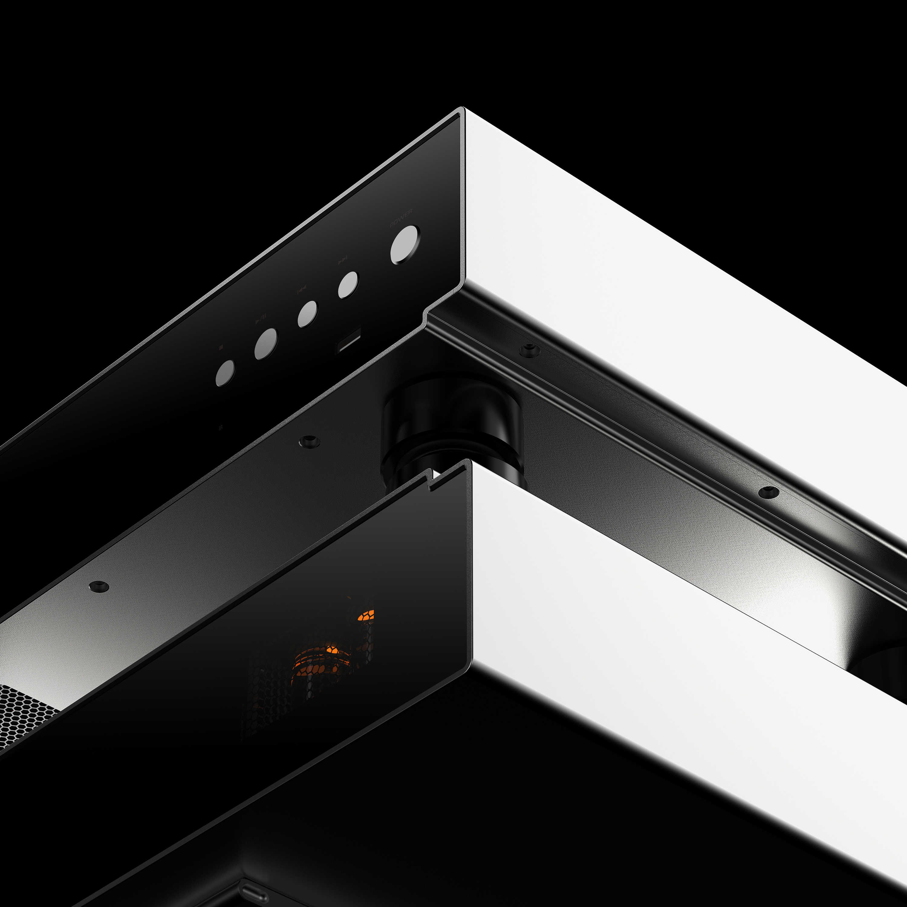 Mit einer speziellen transparenten Öffnung für den direkten Blick auf die beiden leuchtenden Röhren.